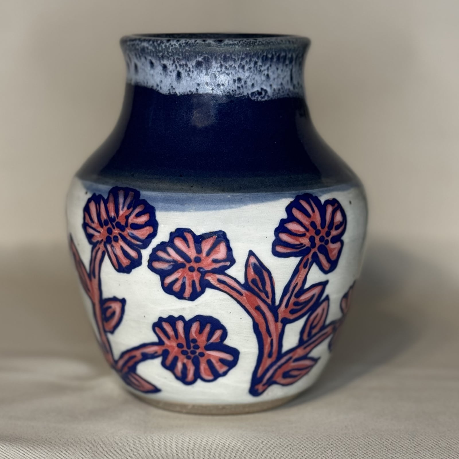 I primarily work on the wheel, though I also enjoy exploring hand-building techniques and occasionally combining the two.  My work is largely functional, with an eclectic range of pieces from mugs to vivid vases.  I’m especially drawn to experimenting with texture, underglaze, and diverse glazing techniques.  I’ve explored methods such as Nerikomi, Neriage, and Raku, and I’m excited to continue learning and refining my skills.
